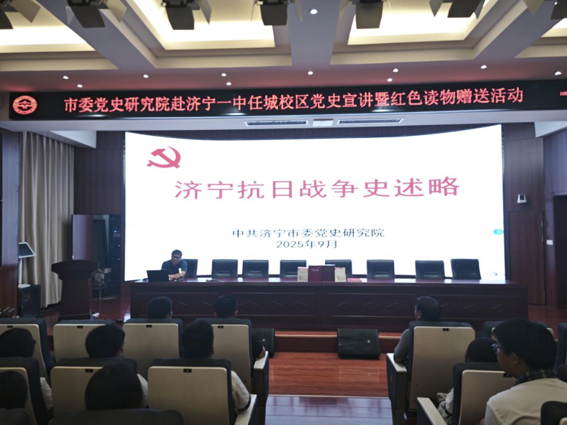 为传承和弘扬伟大抗战精神,开展好抗战史教育,进一步推动党史“七进”工作,近日,市委党史研究院到济宁一中任城校区开展专题宣讲暨红色读物推介活动。济宁一中任城校区高一年级百余名师生代表参加活动。 “史敢当”宣讲队成员以《济宁抗日战争史述略》为题开展现场宣讲,围绕中国人民抗日战争的重大意义、现实启示,从九一八事变后的抗日救亡活动、济宁沦陷与日军暴行、抗日武装起义、八路军主力部队到来、抗日根据地的建立、红色微山湖、夺取抗战的最后胜利等方面讲述了济宁地区抗日战争的主要历史脉络、发生的重大战事、涌现的著名抗战英烈及济宁地区为抗日战争作出的重要历史贡献,以极具本地特色的抗战故事勉励同学们铭记历史,缅怀先烈,珍爱和平,开创未来,活动受到师生一致好评。 宣讲结束后,市委党史研究院向学校赠送了《中共山东百年历史青少年读本》《济宁抗日战争志》等各类党史史志读物500余册,用于学生课外阅读和学校开展党史学习教育活动。 本次活动是市委党史研究院2025年度党史“七进”和红色读物推介系列活动的一部分,下一步,济宁市委党史研究院将重点抓好青少学生这一重要群体,围绕重要时间节点,深入大中小学校园开展系列专题宣讲,广泛推介红色读物,营造学习党史国史、传承红色基因的浓厚氛围。 |